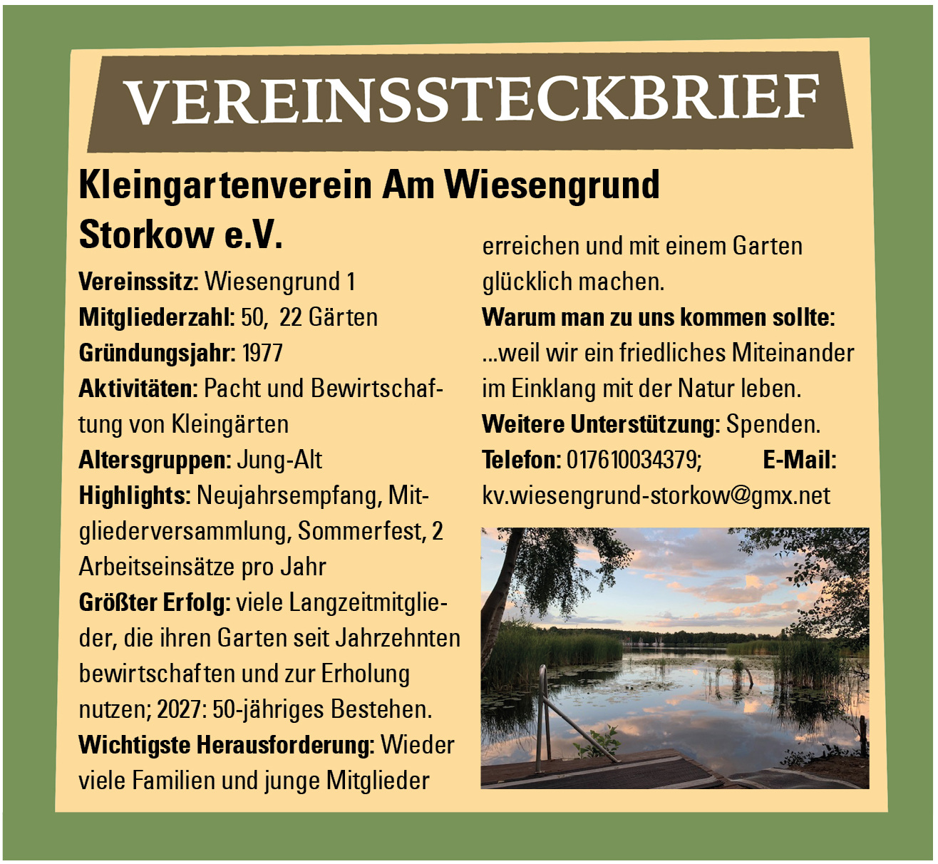 Vereinssteckbrief Kleingartenverein Am Wiesengrund Storkow
